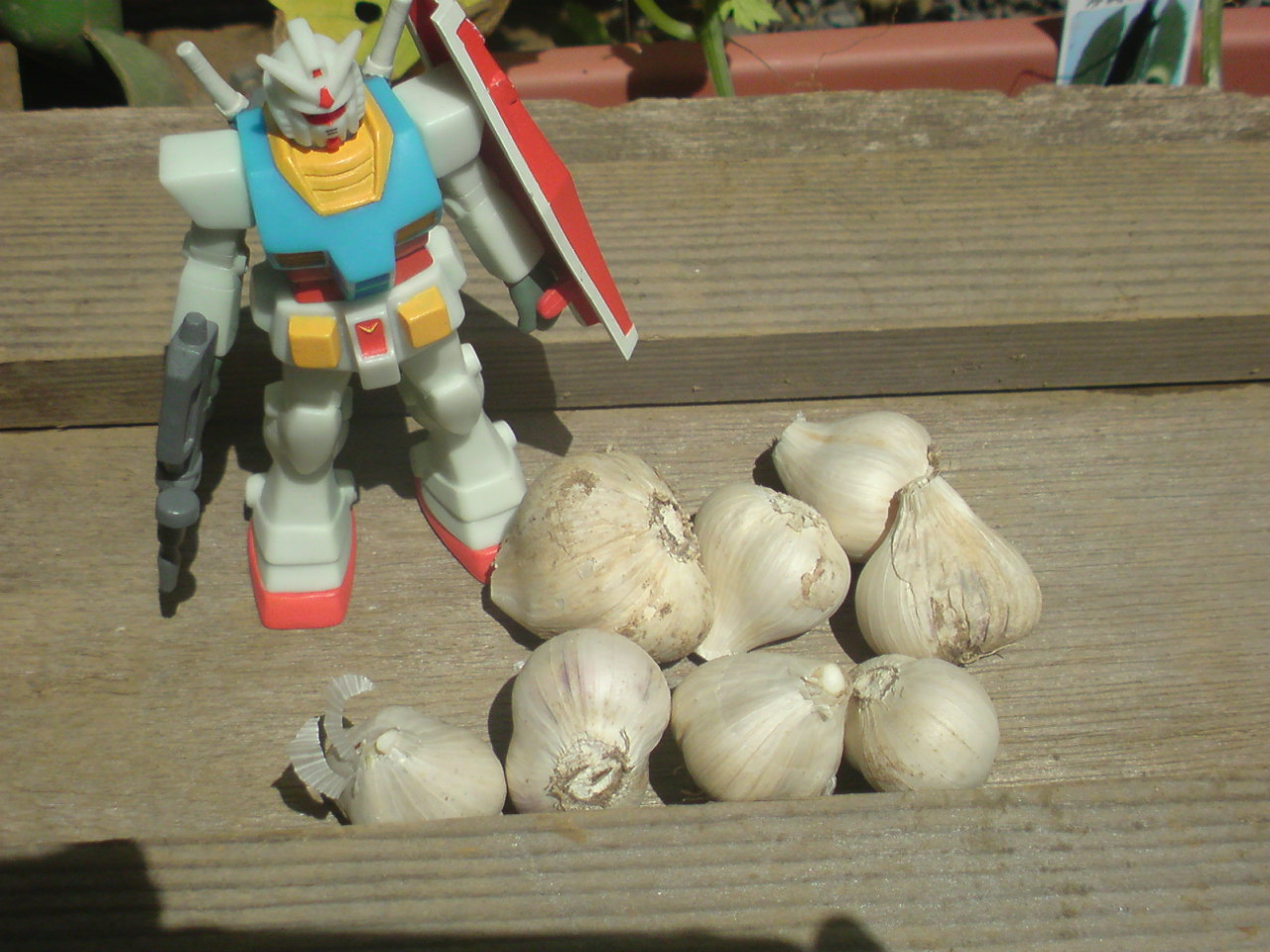 写真を見て頂ければお分かりと思いますが、ガンダムが18mなのでかなりの大きさのにんにくが収穫できました。