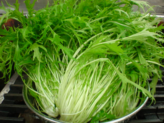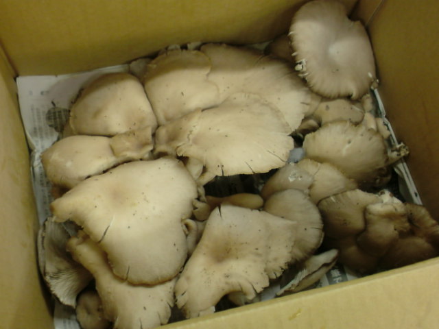 直接、栽培所から納入のひらたけと、畑から土付きでごっそり採ってきた水菜。