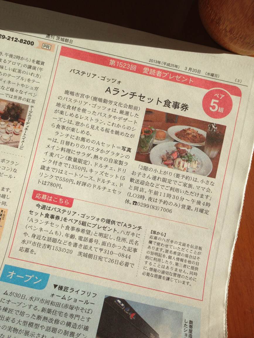 3月20日の朝日新聞に折り込みの「週刊茨城朝日」に掲載して頂きました。