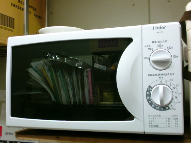 温め機能があればそれで良しなので一番お買い得な物を選んだんですが、これが素敵。出来上がりの合図が今時のエレクトリックなものではなく、まるで呼び鈴の「ちぃ~ん」というアナログな音。これぞ「チンする」の基本音! しかもすべてダイヤル設定。実に使いやすい! 毎日朝食時の牛乳温めがとても楽しみです